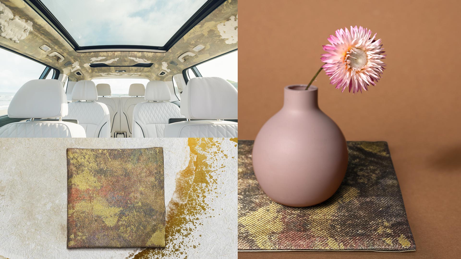 「西陣織は長い歴史の中で帯を織り続けてきました。ですから車の内装に用いられる布を織ることは大きなチャレンジでした。比類ないクラフツマンシップ 、そして高い美意識によってつくりあげられたBMW X7にふさわしい技術と美意識を表現するために、私たちも職人たちと深くコミュニケーションを図りながら今回のコラボレーションに向き合いました。丹念な手仕事による和紙の箔を繊細な糸状に細く細く裁断し絹糸とともに織りあげながら、複雑な組織で立体的な雲の形を表現することを目指しました。実際に織ってみると箔の部分がガタガタになってしまって、職人さんとどうすれば理想通りの仕上がりになるのか検討し、トライアンドエラーを重ね、困難を乗り越えやっと到達したのがこの織物です。色、引箔の美しさは世界に誇る西陣の技術の頂として誇れるものが完成しました。西陣の匠の技が紡いだ美の頂点です。伝統と革新、それぞれの美意識と技術を融合させながら生み出したこの空間は、BMWと西陣織のコラボレーションにしかなし得ないものであると自負しています」と、加納幸の梅田光美さんは語ります。